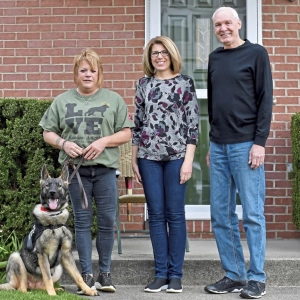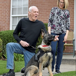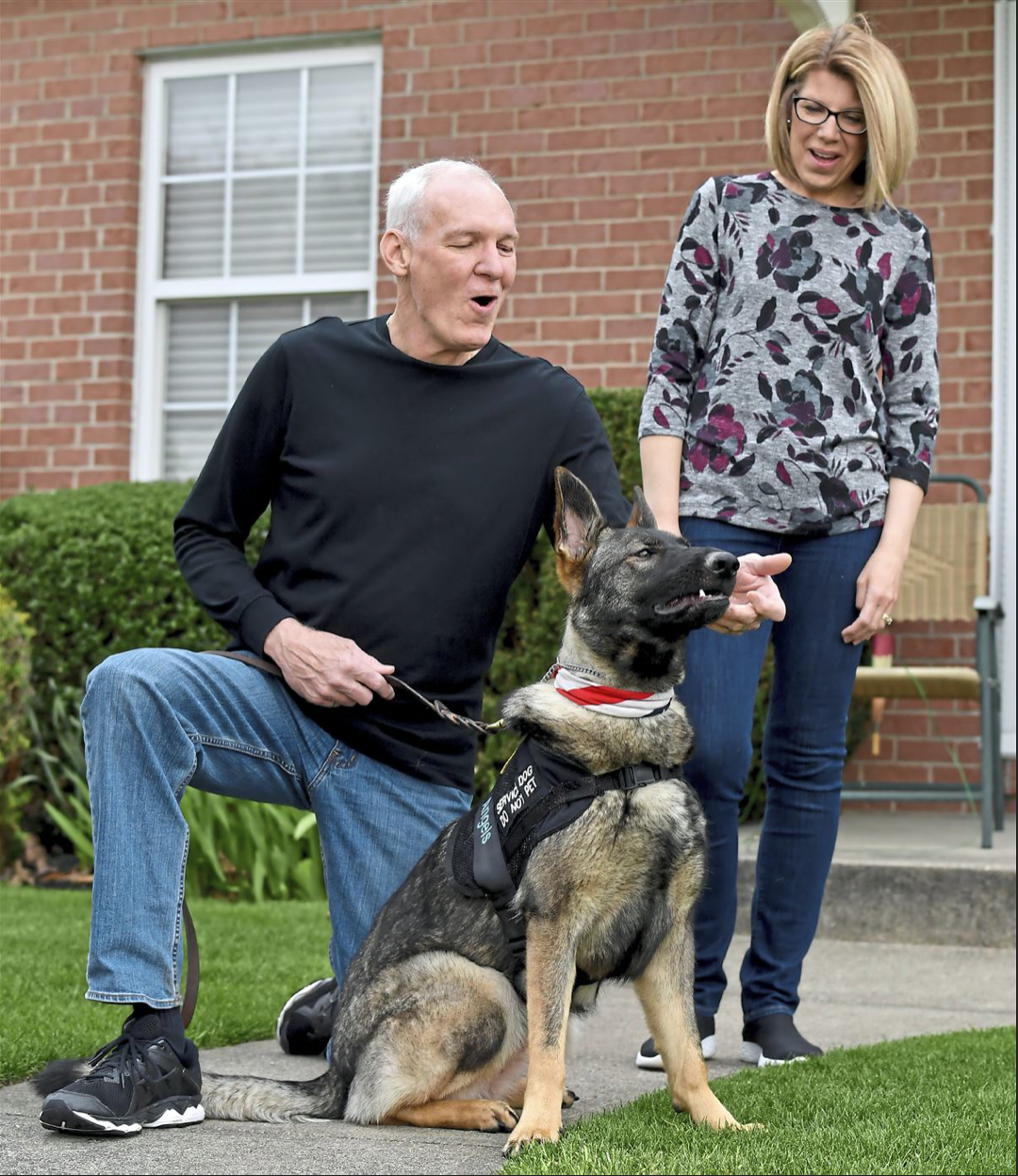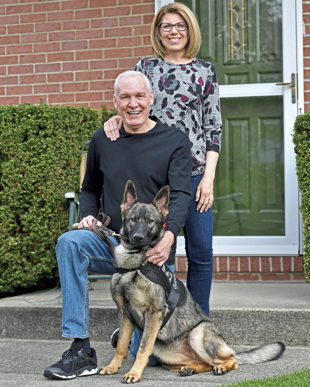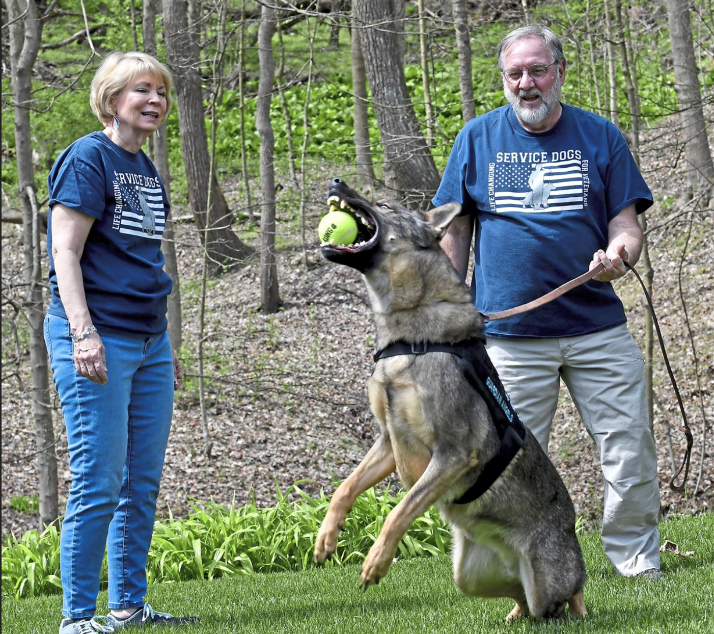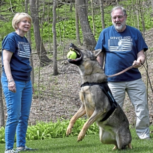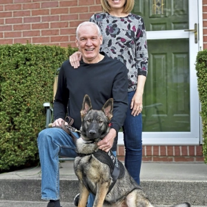 The couple had an unusual introduction to the foster program during a Christmas visit from their daughter, Megan. When they picked her up, they were surprised to see she was accompanied by a German shepherd named Button. Megan Rodgers is in the apprentice training program at Guardian Angels, and Button was a well-behaved house guest. So her parents applied for a foster dog, and they were approved.